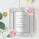 Fundo de aspecto fino prateado decorado com flores brancas e cor-de-rosa esbranquiçada, flores e confete prateado falso. Personalize e adicione seus nomes e detalhes da festa. Letras negras. 1 folha = 1 convite impresso de borda a borda.