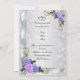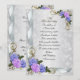 convite de festas de 25 para aniversário para pais em fundo branco de satin-look com flores gravadas. Fitas, lavandas e rosas azuis no canto. O modelo pode ser utilizado para qualquer ocasião especial. Simplesmente mude o texto para atender às suas necessidades.este é um design impresso sem embelezamentos separados e, portanto, não requer postagem extra.