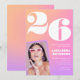 Convites de aniversário de 26 anos rosa para ela gradiente de foto retrô