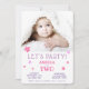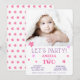 Convite de Aniversário de 2 Anos com Estrelas Cor-de-Rosa Fofas. O cartão tem estrelas cor-de-rosa fofas na frente e no verso. O design tem uma foto - insira sua foto no modelo e personalize o cartão com seus detalhes. Convide sua família e amigos para a festa de segundo aniversário da sua filha.