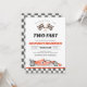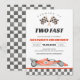 Aqueça os motores para uma celebração épica com este convite de 2º aniversário de carro de corrida "Two Fast". Com um design elegante e vintage de corrida com xadrez ousado e cores vibrantes, é a maneira perfeita de definir o ritmo para o grande dia do seu pequeno piloto. Personalize facilmente os detalhes para criar um anúncio de alta velocidade que os convidados vão amar. Este cartão profissional e de alta qualidade garante que o segundo aniversário do seu filho comece na linha de chegada!