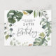 Convite de aniversário de 30 anos com folhagem botânica em aquarela. Belas aquarelas florais impressas à mão e texto em letra cursiva moderna. Parte de uma coleção de festa.