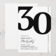 Apresentamos um convite de aniversário de 30 anos atemporal em preto e branco que combina perfeitamente o charme antigo da fonte serifada em negrito '30' com um modelo personalizável moderno e fácil de usar. Este convite não é apenas um cartão, é um souvenir significativo para celebrar o marco de completar 30 anos.