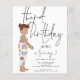 Um preço orçamentário menor, alternativo de papel de 4,5" x 5,6". Os envelopes são um extra opcional. Este design legal para a aniversário de 3 anos de sua filha tem um roteiro de estilo de caligrafia e uma ilustração abstrato de uma garotinha com um padrão-arco-íris um fundo branco.