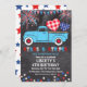 Convite de Aniversário de 4 de Julho com Caminhão e Menina no Quadro Negro Estrelas e Listras