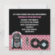 Senhoras divertidas, 50º convite de aniversário feito em um olhar de 50. Um rosa com fundo preto de bolinhas, na parte inferior do convite tem gráficos de uma jukebox colorida, dois discos de vinil e um frasco de pop. O topo do convite é feito em um fundo preto sólido, com texto em negrito branco e rosa pronto para personalizar o evento de tema do seu 50. Convite divertido que todos amarão.