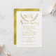 Procurando um convite de aniversário de casamento de 50 anos simples, mas elegante? Este design apresenta uma fonte de caligrafia a ouro falso e uma grinalda de louro em aquarela dourada sobre um fundo de papel de aquarela digitalizado. A parte de trás do convite apresenta uma textura de folha de ouro falso. Para mais designs, visite a loja. Este convite de aniversário de casamento de 50 anos com caligrafia a ouro falso é simples de editar e pronto para ser personalizado.