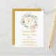 Com uma delicada grinalda de folhagens florais em aquarela, este convite de aniversário de casamento de 50 anos botânico chic pode ser personalizado com as informações do seu aniversário especial. O verso apresenta uma grinalda floral combinando que emoldura as datas do aniversário em texto dourado elegante em um fundo dourado. Projetado por Thisisnotme©