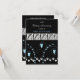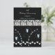Um design sofisticado com fundo preto e um padrão de pelo de zebra no centro. Corações azuis e brancos o acentuam. Personalize como desejar para o seu evento.