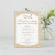 Este convite de aniversário de 50 anos de casamento apresenta uma moldura branca com uma borda fina dourada e um fundo com padrão marrom dourado e branco. O design inclui um divisor decorativo na metade superior. Está pronto para ser personalizado e é adequado para um aniversário de 50 anos de casamento.