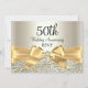 Convite de Aniversário de 50 Anos de Casamento. Desenho elegante de arco de diamante dourado e floral em turbilhão. Por favor, note: Todas as imagens planas! Elas não têm joias reais!