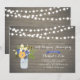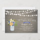 Celebre seu dia especial com este convite de aniversário de casamento elegante. Este design apresenta um lindo buquê de flores com um jarro de Mason e luzes de corda em um fundo de madeira rústica.