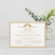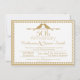 Este convite de aniversário de 50 anos de casamento apresenta duas silhuetas de pássaros, um divisor decorativo e uma borda com padrão dourado/marrom e branco. Está pronto para ser personalizado e é adequado para um aniversário de 50 anos de casamento semiformal.