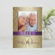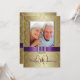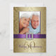 Celebre o seu aniversário de casamento com estilo com estes convites elegantes com efeito dourado para o 50º aniversário de casamento no estilo damasco com a cor roxa. Estes convites elegantes são uma mistura maravilhosa de tradicional e moderno. Na frente do cartão, substitua a foto de amostra pela sua foto como casal agora ou adicione a foto do seu casamento de 50 anos atrás. A arte gráfica dá a este cartão um visual 3D, embora a fita de cetim, o broche de diamante e o número 50 dourado sejam apenas imagens impressas no cartão. Por favor, encomende em papel branco simples como mostrado, para que todos os detalhes do design se destaquem. No verso, adicione os detalhes do convite para a festa de 50º aniversário e o texto de RSVP. Este cartão NÃO vem com quaisquer enfeites. Tudo o que vê é impresso numa superfície plana do cartão. Gostaria de uma cor de fita diferente ou ajuda com o design do seu convite? Por favor, contacte luxuryweddinginvitations