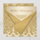 Este elegante e sofisticado convite de aniversário de 50 anos de casamento com padrão de brocado de damaço bege e dourado com abas frontais de lantejoulas douradas impressas tem um ornado pergaminho dourado na frente e um lustre de sala de baile formal em branco cremoso no verso. Faria uma declaração sofisticada para o casal que celebra 50 anos de casamento. Sugiro papel com brilho pérola ou papel semibrilho básico. Se precisar de algum item correspondente, envie um e-mail com o seu pedido para niteowlstudio@gmail.com.