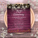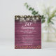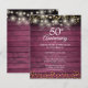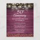 Com iluminação de corda e confetes delicados de corações dourados sobre um fundo de madeira em vermelho burgundy rústico. Personalize com as informações do seu aniversário de cinquenta anos em dourado em letras elegantes. Desenhado por Thisisnotme©