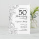 Convite de Aniversário de Casamento de 50 Anos Floral Preto e Branco. Design moderno minimalista com desenhos de contorno botânico e fonte de letra script. Cartão de convite elegante perfeito para uma celebração sofisticada. Pode ser personalizado para qualquer ano de casamento. Convites impressos da Zazzle ou modelo digital para impressão instantânea.