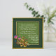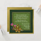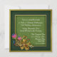 Convite de festa de aniversário de casamento de cinquenta anos com visual antigo elegante, feito em um padrão de damasco verde. Gráficos de um tom verde escuro e dourado emolduram a área de texto verde mais claro, e têm uma linda decoração floral em tom dourado e esmalte, no canto inferior esquerdo. O texto em branco está pronto para ser personalizado para o evento.