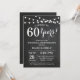 Convite de Aniversário de 60 Anos de Casamento. Fundo de Quadro Negro. Luzes de Corda. Preto e Branco. 1º, 2º, 3º, 4º, 5º, 10º, 15º, 20º, 25º, 30º, 35º, 40º, 45º, 50º, 55º, 60º, 65º, 70º, 75º, 80º, Qualquer Ano. Aniversário de Adulto. Festa de Aniversário de Homem ou Mulher. Para personalização adicional, clique no botão "Personalizar" e use nossa ferramenta de design para modificar este modelo.
