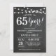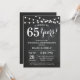 Convite de Aniversário de 65 Anos de Casamento. Fundo de Quadro Negro. Luzes de Corda. Preto e Branco. 1º, 2º, 3º, 4º, 5º, 10º, 15º, 20º, 25º, 30º, 35º, 40º, 45º, 50º, 55º, 60º, 65º, 70º, 75º, 80º, Qualquer Ano. Aniversário de Adulto. Festa de Aniversário de Homem ou Mulher. Para personalização adicional, clique no botão "Personalize" e use nossa ferramenta de design para modificar este modelo.