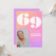 Convites de aniversário de 69 anos rosa para ela gradiente de foto retrô