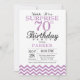 Convite de Aniversário de 70 anos Surpresa com Chevron Roxo. Preto e Branco. Aniversário de Adulto. Convite de Aniversário para Homem ou Mulher. Para personalização adicional, clique no botão "Personalize" e use nossa ferramenta de design para modificar este modelo.