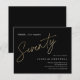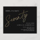 O convite de aniversário 70 minimalista apresenta na moda faux gold foil number guião manuscrito Senty e os detalhes do seu partido em serif clássico sobre cor preta de fundo, simples e elegante, convite de aniversário para homens e mulheres para adultos, surpresa de excelente.