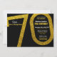 Um Convite de festas clássico de 70 Birthday Surprise apresenta uma paleta de cores cintilantes de ouro preto e sujo com tipografia moderna. Fácil de personalizar com seu próprio texto para ajustado de seu evento especial.