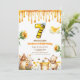 Um tema de aniversário doce com abelhas, urso de mel, colmeia, pássaro pequeno e flores amarelas na frente e outro urso de mel nas costas! Você pode personalizar este convite com seus detalhes.