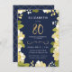 Este elegante e elegante convite para o oitavo aniversário apresenta uma fronteira floral ilustrada e o número "80" em ouro. O plano de fundo é uma cor azul marinho, mas pode ser personalizado para qualquer cor que você escolher. O verso do convite inclui um padrão de quatrefoil dourado com um fundo azul correspondente que também pode ser trocado. O texto é personalizável para o seu evento especial de celebração de aniversário de marcos.