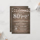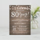 Convite de Aniversário de 80 Anos de Casamento. Fundo de Madeira Rústica. Luzes de Corda. 1º, 2º, 3º, 4º, 5º, 10º, 15º, 20º, 25º, 30º, 35º, 40º, 45º, 50º, 55º, 60º, 65º, 70º, 75º, 80º, Qualquer Ano. Aniversário de Adulto. Festa de Aniversário de Homem ou Mulher. Para personalização adicional, clique no botão "Personalize" e use nossa ferramenta de design para modificar este modelo.