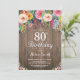 Convite de Aniversário de 80 Anos para Mulheres Floral Rústico. Flor Floral Aquarela, Fundo de Madeira Rústica. Vintage Retro. Aniversário de Adulto. Convite de Festa de Aniversário para Mulheres Meninas Senhoras Adolescentes. 13º 15º 16º 18º 20º 21º 30º 40º 50º 60º 70º 80º 90º 100º. Qualquer Idade. Para personalização adicional, clique no botão "Personalize" e use nossa ferramenta de design para modificar este modelo.