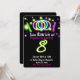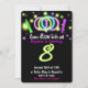 Convite de Aniversário de 8 Anos Luzes GLOW Idade 8. Personalize o texto na frente e no verso.