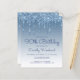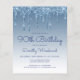 Este convite de aniversário de 90 da moda apresenta uma borda brilhante azul de brilho azul e fundo azul ombre. As palavras "90 Birthday" e o nome do convidado de honra aparecem em um script de escrita manual azul casual, com o resto do texto personalizável em fontes de sans serif azuis. O mesmo design de gota a gota azul aparece no verso.