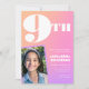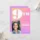 Convite de aniversário de 9 anos com gradiente laranja rosa Foto