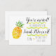 Este simples convite de aniversário de abacaxi faz você e seus convidados sorrirem! Em destaque em um fundo branco, o abacaxi brilhante se destaca lindamente, mas o fundo é facilmente alterável no modo personalizado. Um abacaxi menor é delicadamente centrado nas costas. Por favor, aproveite!