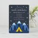Celebre o dia especial do seu docinho com esta design de Aniversário da Festa de aniversário de Camping. Design apresenta um céu noturno estrelado com montanhas e uma tenda amarela. O inverso é um padrão de estrelas. Você pode personalizar isso ainda mais clicando no botão "PERSONALIZAR". Correspondência de Itens em nosso compro para um tema completo de festa. Montagem de página de cobrir fornecida pelo Freepik