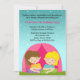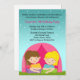 Personalize o Convite de aniversário de camping desta criança. Apresenta duas garotas bonitas numa tenda com uma lanterna sob um céu noturno estrelado. Alguns elementos JDDigiDesign