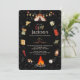 Celebre o grande dia do seu pequeno aventureiro com este vibrante Convite de Aniversário de Acampamento! Com um fundo preto ousado, este design atraente apresenta um arranjo divertido de itens coloridos de acampamento - incluindo uma barraca, lanterna, fogueira e mais - circulando os detalhes da festa. Perfeito para crianças que amam o ar livre, este convite define o tom para uma celebração emocionante e cheia de aventuras. Ideal para aniversários com temas de acampamento, natureza ou diversão ao ar livre!