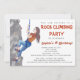 Convite de festa de aniversário de escalada com parede de escalada e alpinista em um fundo e cor de texto à sua escolha. Você pode personalizar facilmente este convite de aniversário de escalada infantil para o seu evento simplesmente adicionando seus detalhes no estilo de fonte de sua escolha.