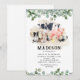 Adicione um toque do campo no dia especial do seu pequeno com nossos adoráveis convites de aniversário de fazenda para crianças! Com uma graciosa combinação de um fundo branco puro combinado com folhagem de eucalipto elegante e adoráveis animais de fazenda em aquarela, como vacas, porcos, ovelhas, cães, galinhas, coelhos, patos e galos. O design não é apenas charmoso, mas altamente personalizável, tornando-o a escolha perfeita para preservar memórias da infância.