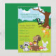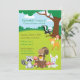 Este design apresenta uma cena florestal com bebês, incluindo uma cinza, guaxinim branco e preto, um esquilo castanho e bronzeado segurando uma bolota, um coelho bonito segurando flores roxas e rosa, um veado bebê e um gambá preto e branco próximo a um carvalho alto. Personalize este modelo de convite com seus detalhes de festa de aniversário. Clique em "Personalizar" para alterar qualquer um dos elementos de design. Clip-art por Prettygrafik design etsy.com/shop/Prettygrafikdesign