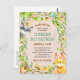Este cartão postal de convite de aniversário de floresta apresenta adoráveis criaturas de floresta e folhas de aquarela. O convite ilustrado à floresta inclui um guaxinim fofo, uma raposa amigável, um ouriço doce e duas pequenas aves sentadas entre as folhas da floresta. Este convite inclui também um fundo de madeira rústico. Personalize facilmente este convite de aniversário da floresta com os detalhes da sua festa. No verso, adicione seu endereço de retorno e qualquer texto adicional, se desejar.
