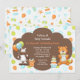 Convide os amigos do seu filho para a próxima festa de aniversário com este convite de aniversário de animais personalizável. Tem uma zebra bonita com balões, um bolo de aniversário e um tigre giro. Alguns elementos de www.nitwitcollections.com Licença nº 41088
