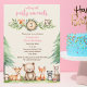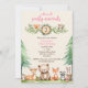 Chamando todos os animais de festa... Convite de aniversário de animais de floresta! Os animais de floresta costeira temem o convite de aniversário com ilustrações de um gambá, pomba, urso, raposa, guaxinim, rato, alce e coruja na cena da floresta. Personalize o número do convite de aniversário.