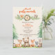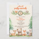 Chamando todos os animais de festa... Convite de aniversário de animais de floresta! Os animais de floresta costeira temem o convite de aniversário com ilustrações de um gambá, pomba, urso, raposa, guaxinim, rato, alce e coruja na cena da floresta. Personalize o número do convite de aniversário.