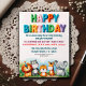 • Convide os amigos do seu filho para uma festa de aniversário inesquecível com tema de zoológico com este adorável convite com um grupo alegre de animais do zoológico. Perfeito para crianças que amam animais, este charmoso design define um tom divertido e aventureiro para qualquer celebração.