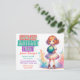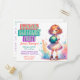 Um Convite de aniversário temático de boliche de anime fofo. Em roxo, rosa e turquesa. Adicione instruções, instruções ou detalhes no verso.