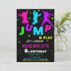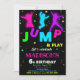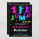 Convite de aniversário para Bunt House trampoline Park. Salta e brinca com este belo convite para raparigas e rapazes a saltarem na festa de aniversário, com silhuetas de criança neon saltando. Basta editar este modelo fácil de usar no menu Personalização para torná-lo especial.