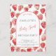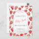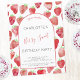 Bonita e ultra moderna cor de água, convite de aniversário doce de morango. A parte traseira apresenta um padrão de morango correspondente para uma ajuda extra de doçura. Personalize o texto para se adequar à sua celebração. Arte original de Nic Squirrell